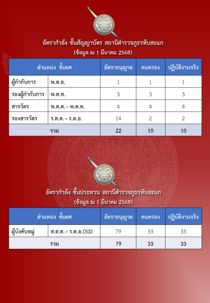 ข้อมูลอัตรากำลังพลสถานีตำรวจภูธรทับสะแก